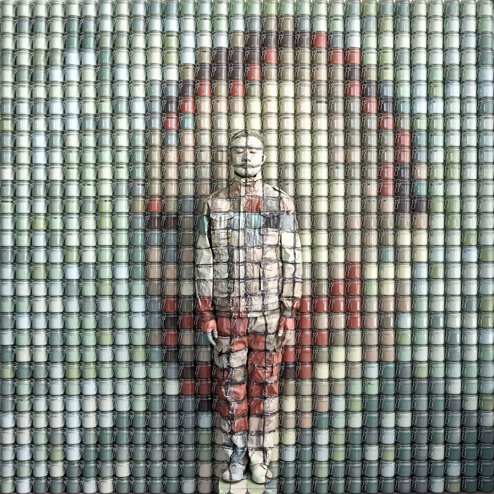 Collaboration de JG Causse avec le photographe Liu Bolin pour promouvoir les peintures Perrot & Cie. Installation de de 1000 verrines de peinture en 12 teintes. Couleurs exactes de l’autoportrait de Van Gogh.